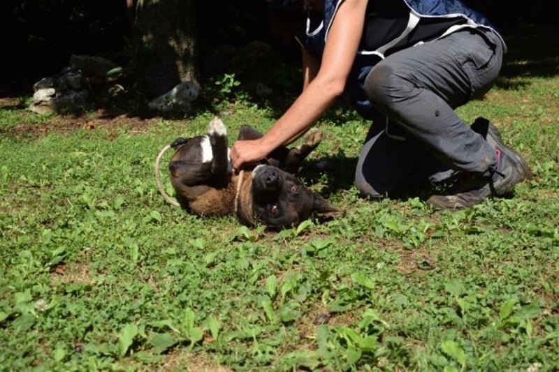 Manchmal benutze ich meinen Mund dazu, um Hände anzuknabbern. Was ich noch lernen muss ist, meine Kraft richtig einzuschätzen. Das gelingt mir hier im Canile noch nicht. Wenn ich sehr aufgeregt bin besteht die Gefahr, dass ich mich verletze.