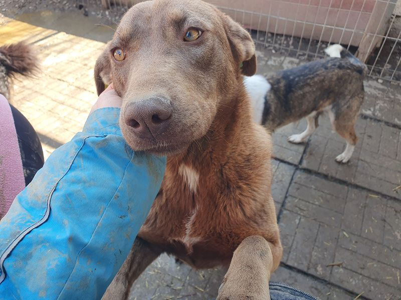 Thea ist eine nette junge Hündin. Sehr freundlich und neugierig suchte Thea die ganze Zeit den Kontakt zu uns. Sie ist super menschenbezogen und liebt die seltenen Streicheleinheiten. Selbst als wir noch im Nachbarzwinger waren, wartete sie schon auf uns. Allerdings wird in ihrem Zwinger ein Rüde immer wieder gemobbt, woran sie eventuell beteiligt ist. Daher wäre sie als Einzelprinzessin vermutlich glücklicher. Aktuell ist sie etwas moppelig. Sie dürfte also gerne noch etwas abnehmen.