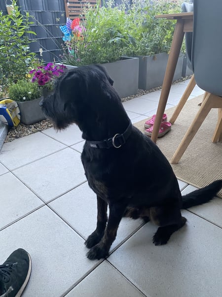 • Rasse: Mischling (vermutlich mit Riesenschnauzer-Anteil)