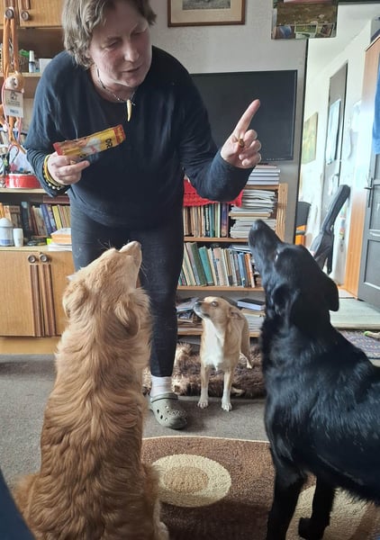 Margo kennt die Leine und lässt sich gut führen. Sie ist immer aufmerksam auf ihren Menschen, möchte gefallen und alles richtig tun. Sie ist in einer ländlichen Umgebung aufgewachsen und kennt den Trubel einer Stadt mit viel Verkehr noch nicht. Spaziergänge im Freilauf mit mehreren Hunden kennt sie und folgt ihren Menschen dabei zuverlässig. Sie ist futtermotiviert und liebt es zu lernen, auch wenn die Pflegestelle mit so vielen Tieren nicht viel Zeit hat, um sich mit jeden sehr viel zu beschäftigen. Das Bürsten und Kämmen lässt sie problemlos zu. Autofahrten kennt sie vom Tierarztbesuch, dabei war sie ruhig und gelassen.