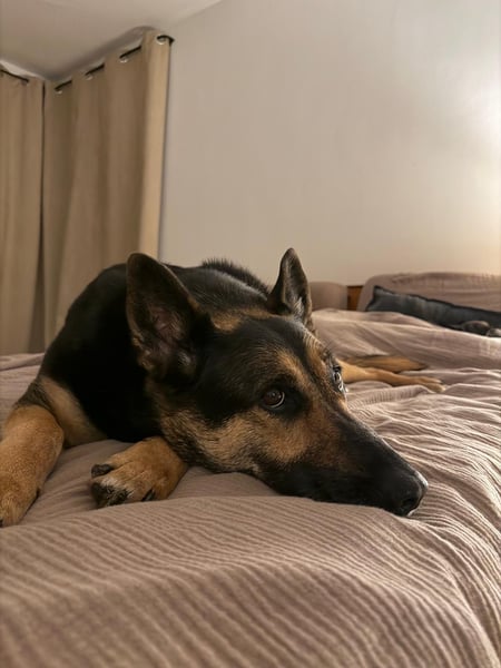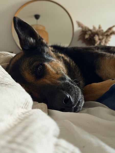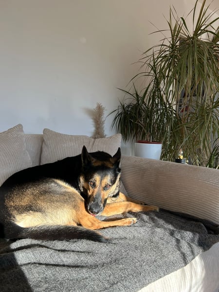 Das Stadtleben meistert sie bereits recht ordentlich, auch wenn Geräusche und Trubel sie aktuell noch manchmal aus der Ruhe bringen können. Dinge wie Fahrräder oder Kinderwagen sind ihr vermutlich einfach noch nicht vertraut – mit etwas Geduld, Routine und liebevoller Führung wird sie hier auch weiterhin an Sicherheit gewinnen. Nachts ist Courtney entspannt und ruhig, und morgens freut sie sich jedes Mal riesig, wenn ihre Menschen in den Tag starten. Will sie einmal aufstehen, bevor ihre Menschen den Tag beginnen, legt sie sich nach kurzer Prüfung, ob der Tag nicht doch mal früher starten kann, wieder ohne jegliche Probleme auf ihrem Platz und gibt dem Schlaf noch eine zweite Chance. Derzeit bringt Courtney noch ein paar Pfunde zu viel auf die Waage, was mit einer angepassten Diät und angemessener Bewegung bereits in Angriff genommen wird. Sie ist motiviert dabei und wird mit der richtigen Unterstützung sicher bald ihr Wohlfühlgewicht erreichen.