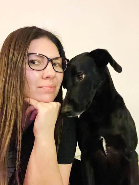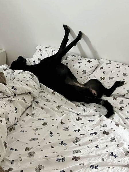 Hunden, die sie bereits kennt, begegnet sie sehr verspielt. Sie liebt es sehr mit diesen zu spielen und kuscheln, nur haben die vorhandenen Hunde nicht immer Lust dazu. Mit unbekannten Hunden ist sie erstmals vorsichtig, lässt sich aber relativ schnell überzeugen, wenn der andere Hund freundlich ist. Bei kleineren Hunden taut sie schnell auf und spielt ausgelassen, große Hunde machen ihr Angst am Anfang.