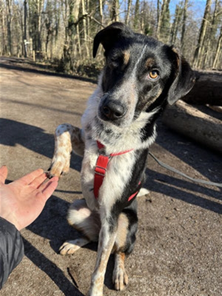 Olivia ist ein Hund, der in erster Linie einen Menschen braucht. Mit anderen Hunden ist es nicht immer einfach. Sie hat für viele Situationen keine guten Strategien, daher muss Hundekontakt aktuell sehr gut betreut und beobachtet werden. Doch auch in Olivias Herzen ist Platz für echte Hundefreundschaften. Ihr bester Kumpel ist aktuell ein Herdenschützer, mit dem sie sogar soziales Spielverhalten zeigt! Generell ist sie nicht als Zweithund auszuschließen, aber ein gründliches und achtsames Kennenlernen wäre unbedingt notwendig, um einzuschätzen, ob die Tiere zueinander passen. Dabei hilft auch gerne die Trainerin und Pensionsleiterin, die mit Olivia arbeitet.