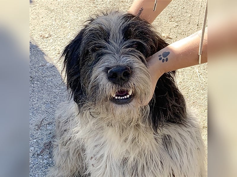Spinos Leben spielt sich seit Jahren im Tierheim ab. Der wuschelige Hundemann lebt seit vier Jahren frei auf dem Tierheimgelände und ‚managed‘ das dortige Miteinander auf seine ganz eigene, hundliche Weise. Es wird höchste Zeit, daß Spino die Geborgenheit einer Familie findet und seine sozialen Talente unter seinen Lieben verstreusseln kann.