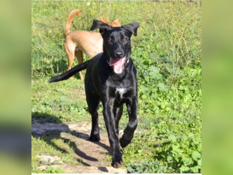 Tasia hat eine ganz besondere Ausstrahlung: Sie hat Energie und den Schalk im Nacken, aber auch Tiefe und großes Interesse an dem, was um sie herum geschieht. Sie ist etwa 67 cm groß; möglicherweise wird sie noch etwas wachsen. Es könnte sich um eine Dogge/Labrador-Mischung handeln.