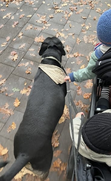 Sie kann gut mit Kindern, Menschen und großen Rüden. Ist allerdings sehr stürmisch, das heißt, bei Kindern muss man schon aufpassen, dass diese nicht umgerannt werden. Bei kleineren Hunden darf man ihr Gewicht und ihre Kraft nicht unterschätzen.