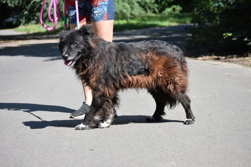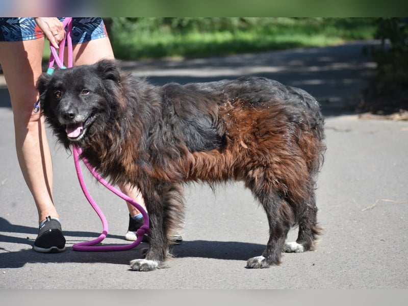 Wir hoffen sehr, dass der Zwinger jetzt für ihn keine Endstation sein wird und er dort sterben muss. Für ihn läuft definitiv die Uhr…Der Senior ist unser absolutes Sorgenkind, er baut jeden Tag mehr ab. Er ist sehr ruhig und ausgeglichen, wir vermuten auch eine beginnende Demenz bei ihm. Mit Menschen ist der alte Rüde sehr freundlich. Für ihn wird es sehr schwer, einen Platz zu finden- er ist groß, dunkelhaarig, männlich und auch noch alt.
