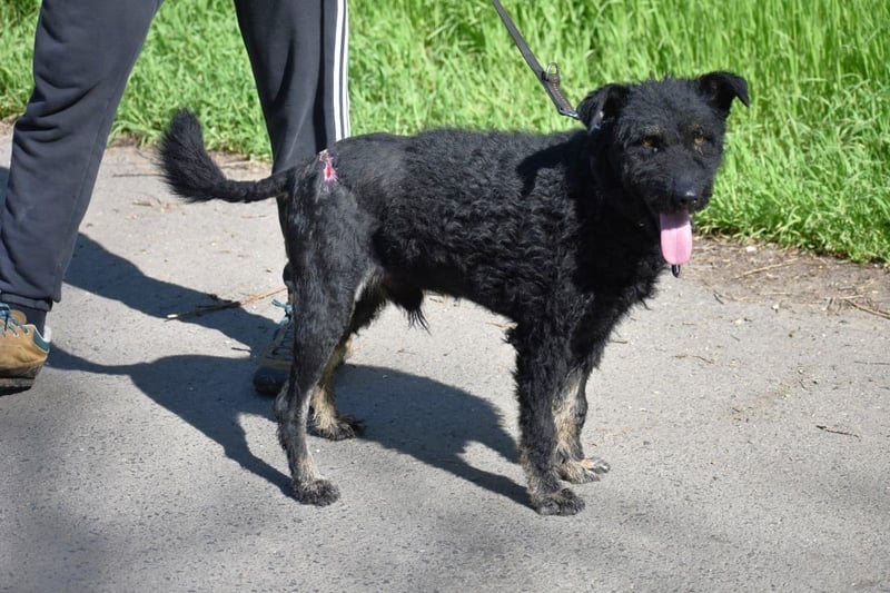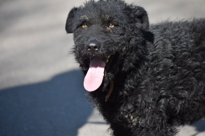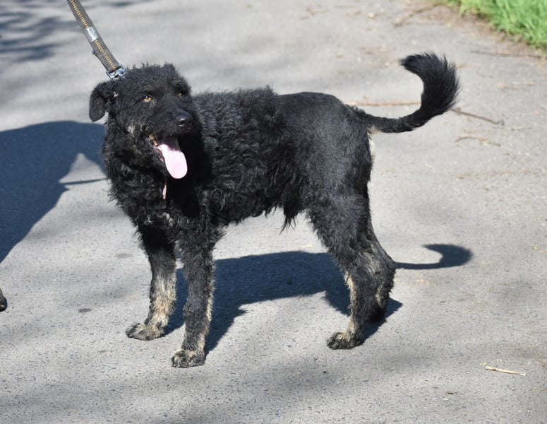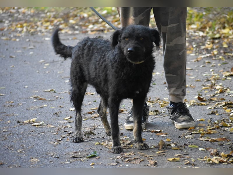 Wir vermuten, dass Kristof ein Mudimischling ist. Das sind ungarische Hütehunde.