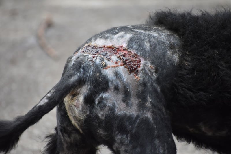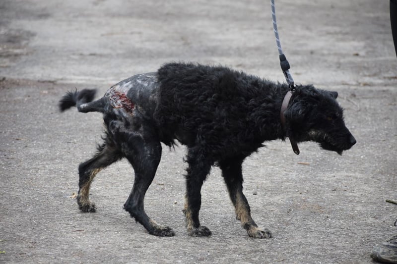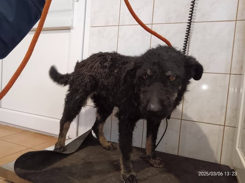 Kristof hat eh schon eine besondere Leidensgeschichte hinter sich: er war mehrere Tage am selben Ort in einem Dorf auf der Straße und hat sich nicht wegbewegt. Als jemand vom Tierheim ihn dann dort abgeholt war, wurde klar warum er dort blieb- er war schwer verletzt und insgesamt sehr verwahrlost. Durch Hundebisse war auf seinem Rücken alles entzündet und die Haut schon großflächig abgestorben. Er muss unglaubliche Schmerzen erlitten haben…