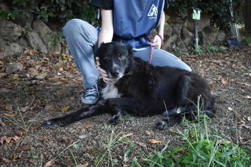 Was es für ihn bedeutet, dass endlich ein Funke an Hoffnung in Form der lieben Tierschützer die dunkle Zelle erhellt, ahnte er bei dem Besuch vielleicht und zeigte sich als den Menschen auf eine sanfte und unaufdringliche Weise zugetan. Auf sehr herzliche Kontaktaufmahme seitens der Menschen reagierte er kurz leicht zurückhaltend, ließ aber dann die Neugierde und die Hoffnung auf etwas Schönes siegen.