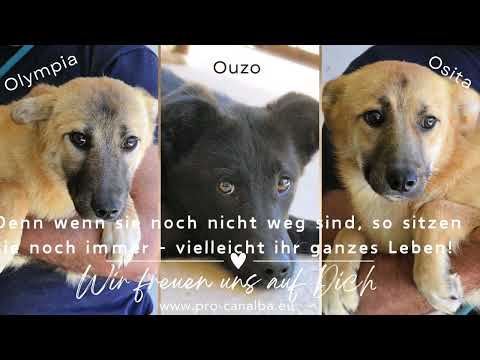 Ouzo, der Schwarze, ist der Bruder von Olympia und Osita, und genau wie seine beiden Schwestern noch ein wenig unsicher, aber freundlich und neugierig. Er kann sich, genau wie Olympia und Osita, zu einem lebensfrohen Vierbeiner entwickeln, wenn er die Chance bekommt, der grauen Betonzelle zu entfliehen, um das bunte Leben kennenzulernen.
