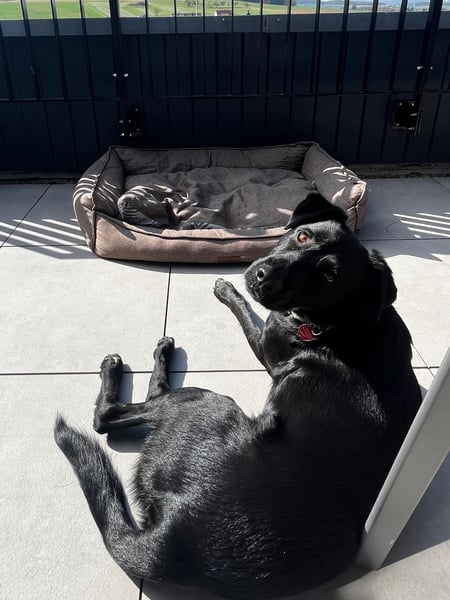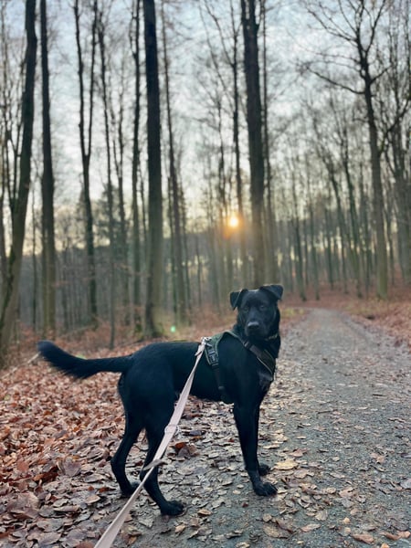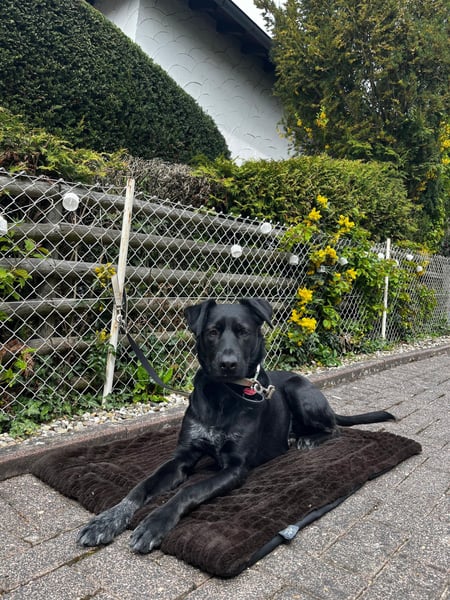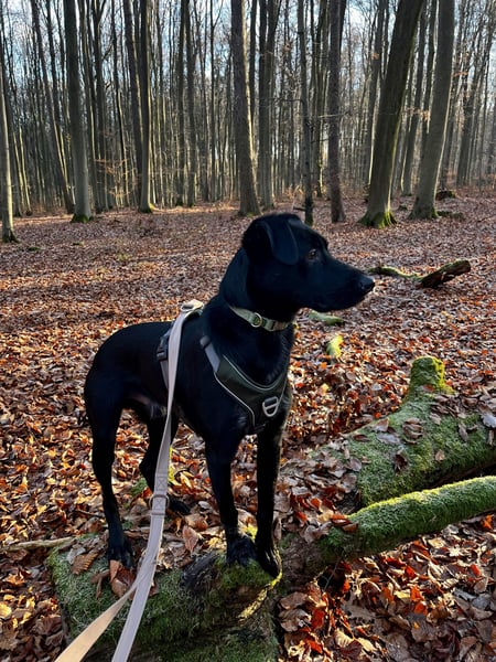 Ouzo ist stubenrein und kann problemlos mehrere Stunden einhalten. An der Leine läuft er bereits gut, auch wenn seine Leinenführigkeit noch weiter ausgebaut werden kann. Besonders gerne ist er mit der Schleppleine unterwegs und liebt es, über Wiesen zu laufen. Autofahrten meistert er nach einer kurzen Eingewöhnung ruhig und entspannt und kann auch längere Strecken problemlos mitfahren. Nach entsprechender Auslastung kann er derzeit etwa fünf Stunden alleine bleiben.