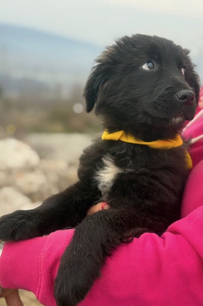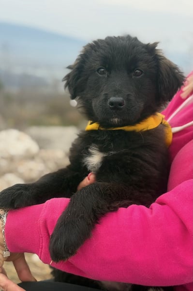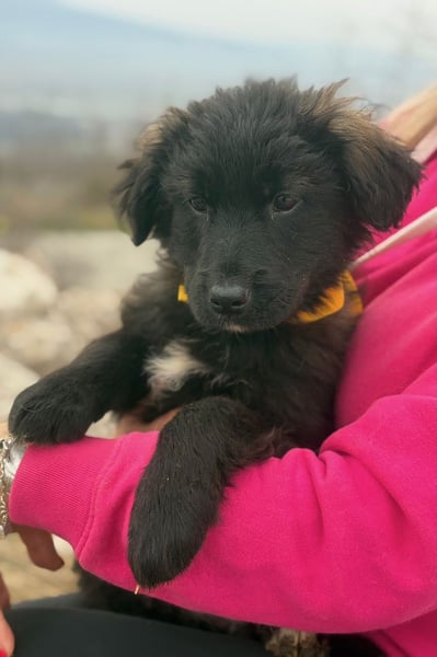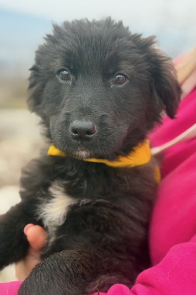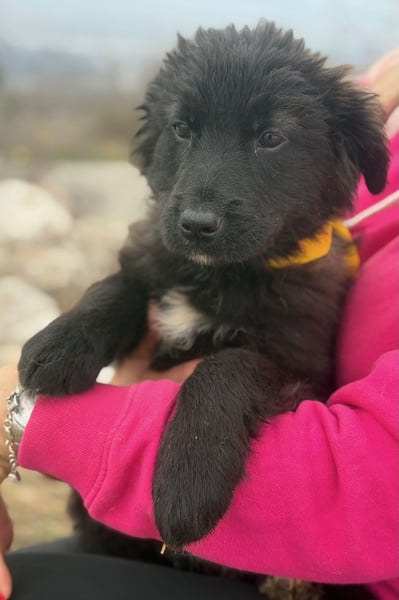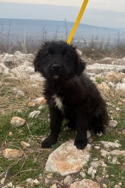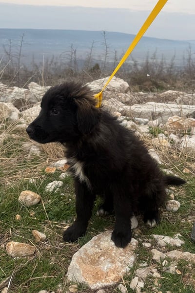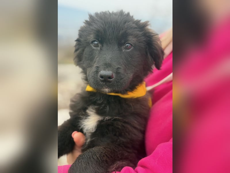 Momo ist ein Hütehundmix unbekannter Herkunft. Sie wird vermutlich mittelgroß und freut sich schon jetzt auf kleine und große Abenteuer.