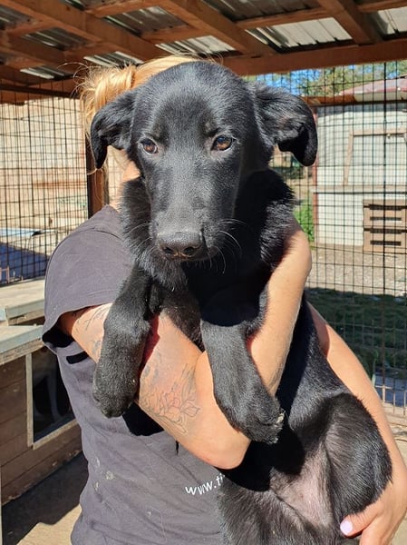 Bei unserem Besuch im September 2025 hat sich Miller erstmal in die Hütte zurückgezogen – dort lag er, ganz still, mit einem beschwichtigenden Blick, der Bände sprach. Dennoch ließ er sich vorsichtig herausnehmen, war völlig ruhig auf dem Arm und zeigte sich durchweg freundlich. Miller braucht keine großen Worte – nur einfühlsame Menschen, die ihm zeigen, dass es da draußen auch Sicherheit, Wärme und Vertrauen gibt. In der richtigen Umgebung wird auch er aufblühen.
