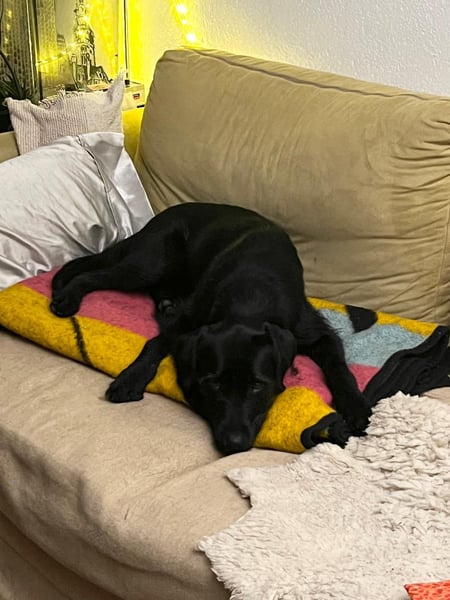 Sie fährt problemlos im Auto mit, ist stubenrein, kann gut alleine bleiben, zerstört nichts und