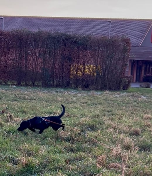 bereits. An der Leine kann sie schon schön laufen, orientiert sich teilweise gut am