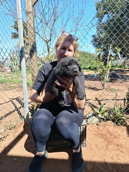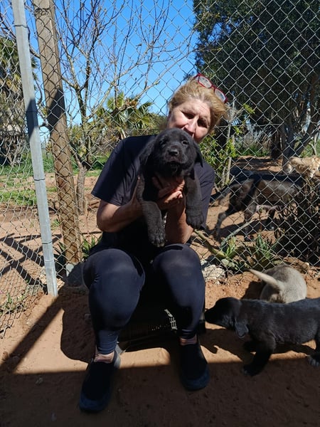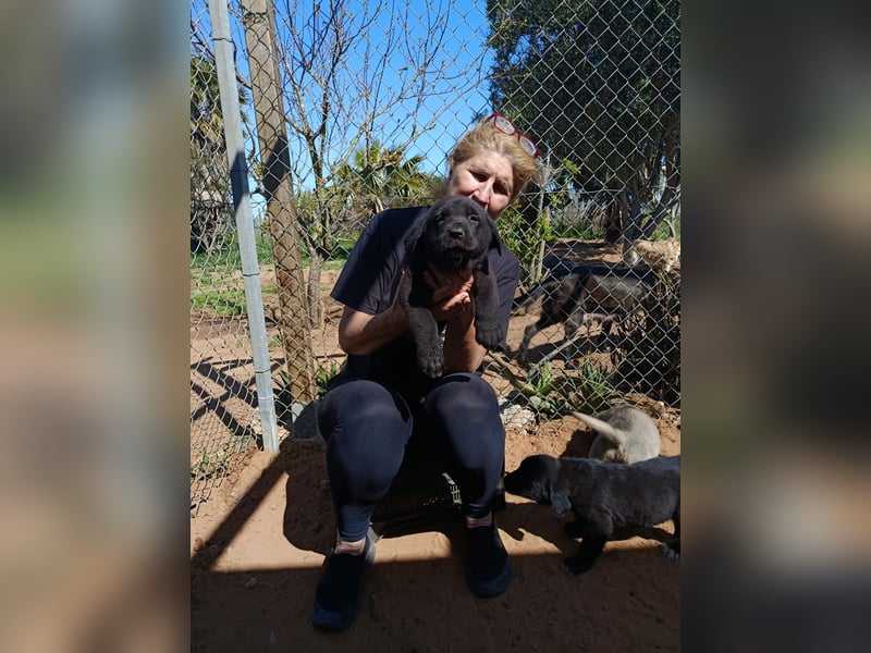 Die schwarze Irisch-Wolfs-Mix-Hündin Mara konnten wir aus der Perrera ResurJA in Linares herausbringen. Nach Ankunft im Süden im sicheren Refugio stellte sich heraus, dass trotz abgemagertem und schlanken Körper die Trächtigkeit weit voran geschritten war.
