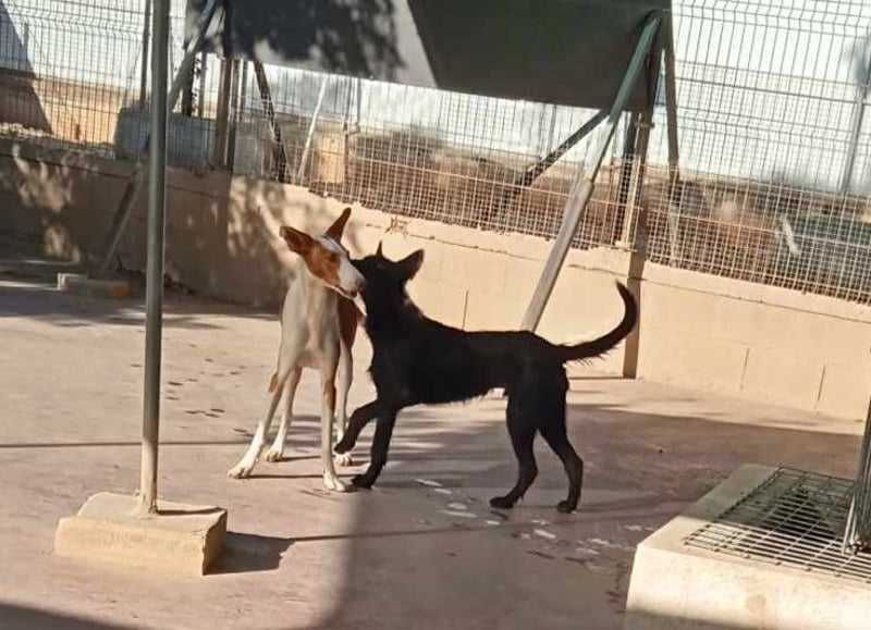 Tizon und die Hündin Mia wurden von einer Mitarbeiterin des Tierheims in der Tötungsstation entdeckt und gerade noch rechtzeitig zu uns ins Tierheim gebracht, bevor Schlimmeres passieren konnte. Wir wissen weiter nichts aus ihrer Vergangenheit. Beide waren nicht gechipt und wurden offensichtlich auch von niemandem vermisst.