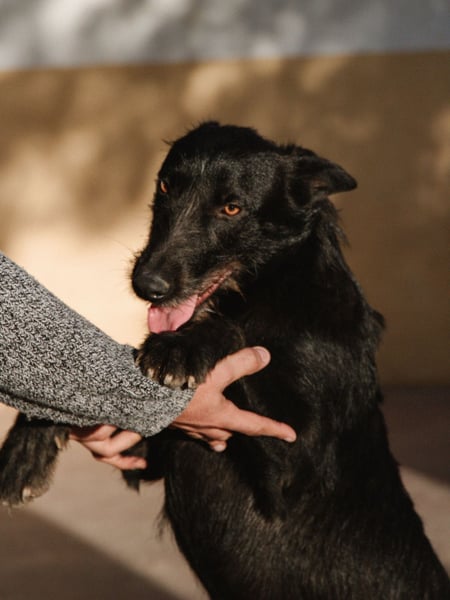 Tizon ist ein ungeschliffener Rohdiamant, in dem viel Potential steckt. Er ist sehr aktiv und Energie geladen und braucht klare Regeln, bekommt er diese, respektiert er sie auch. Beim Spielen ist er etwas überschwänglich auch Menschen gegenüber, auch hier ist Grenzen setzen angesagt. An der Leine zieht er noch, doch mit etwas Übung bekommt man auch das in den Griff. Tizon ist sehr intelligent und lernt schnell. Er zeigt keine Ängste vor lauten Geräuschen im Straßenverkehr oder bei Menschenansammlungen. Beim Tierarzt verhält er sich brav und lässt sich alles gefallen. Auto fahren ist kein Problem für ihn. Wir konnten bei Tizon keinen stark ausgeprägten Jagdinstinkt feststellen.