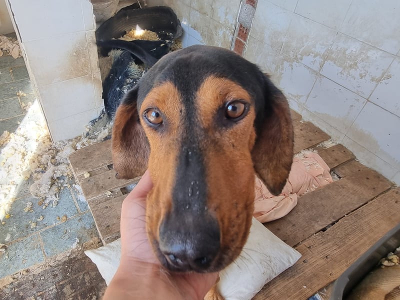 Der Rüde wurde, nachdem er gefunden wurde, positiv auf Leishmaniose getestet. Dank der Medikamente waren die letzten Testergebnisse negativ – seine Medikamente bekommt er vorsorglich noch eine gewisse Zeit.