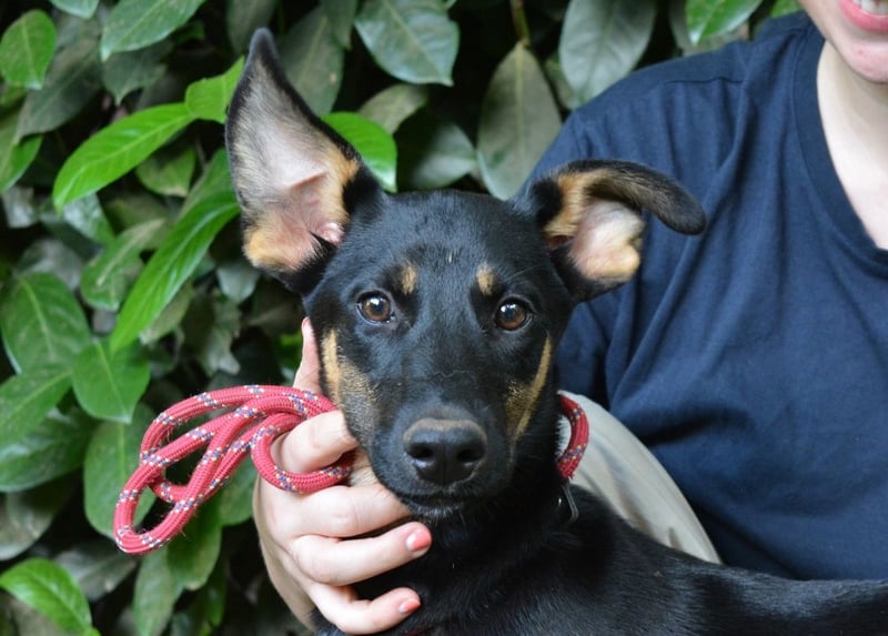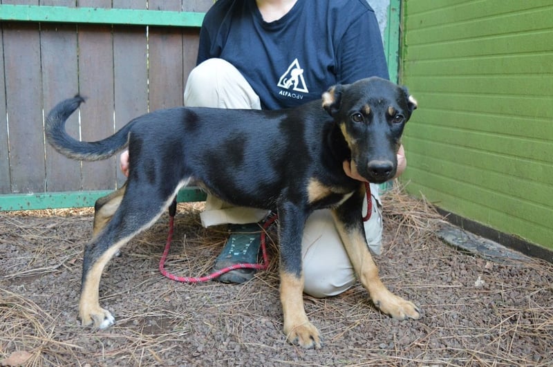 Ich bin jetzt etwa 54 cm groß, also mittelgroß, und man sagt, ich sei freundlich und neugierig – nur am Anfang ein kleines bisschen unsicher. Wenn jemand Neues kommt, bleibe ich erst stehen, die Ohren leicht angelegt, der Blick wachsam. Aber wenn ich merke, dass da keine Gefahr ist, dann kommt das Wedeln von ganz allein.