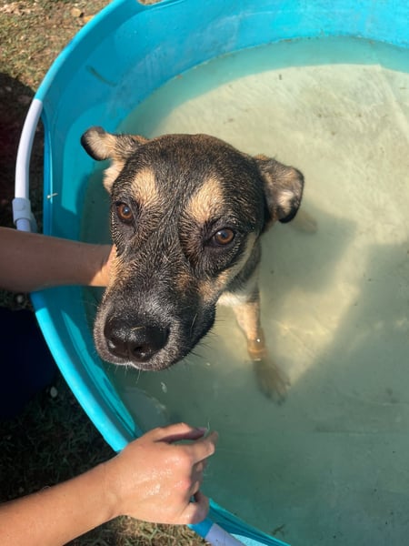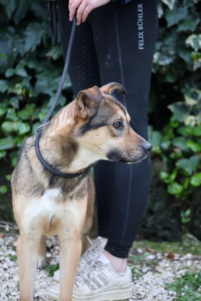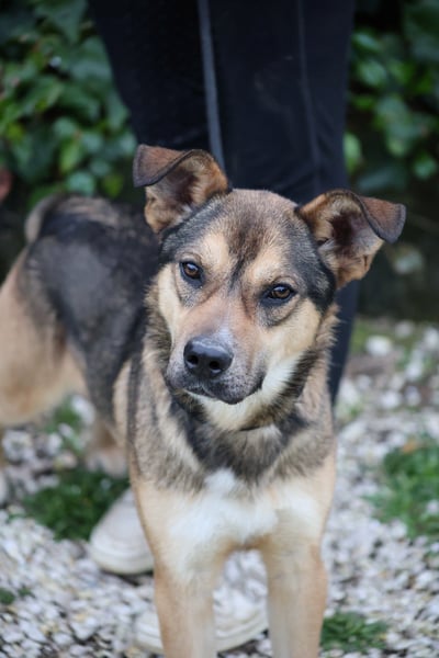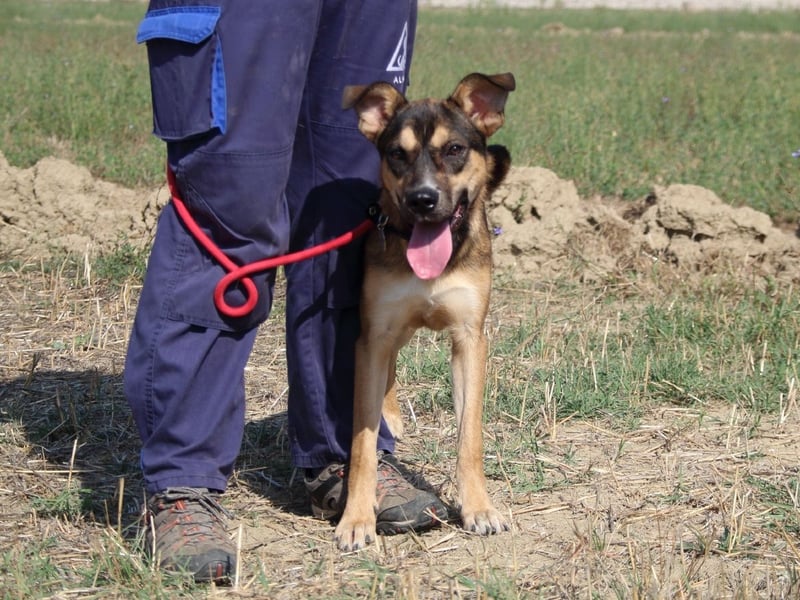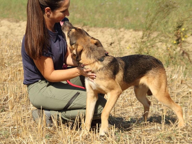 Aus dem unsicheren Welpen, der das Leben nur von kaltem Beton aus kannte, wird nun Schritt für Schritt ein junger Hund, der Vertrauen schenkt, Freude zeigt und voller Hoffnung nach vorne blickt.