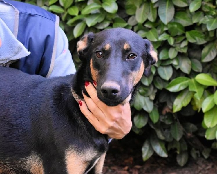 Ich bin jetzt etwa 54 cm groß, also mittelgroß, und man sagt, ich sei freundlich und neugierig – nur am Anfang ein kleines bisschen unsicher. Wenn jemand Neues kommt, bleibe ich erst stehen, die Ohren leicht angelegt, der Blick wachsam. Aber wenn ich merke, dass da keine Gefahr ist, dann kommt das Wedeln von ganz allein.