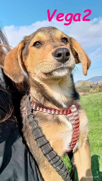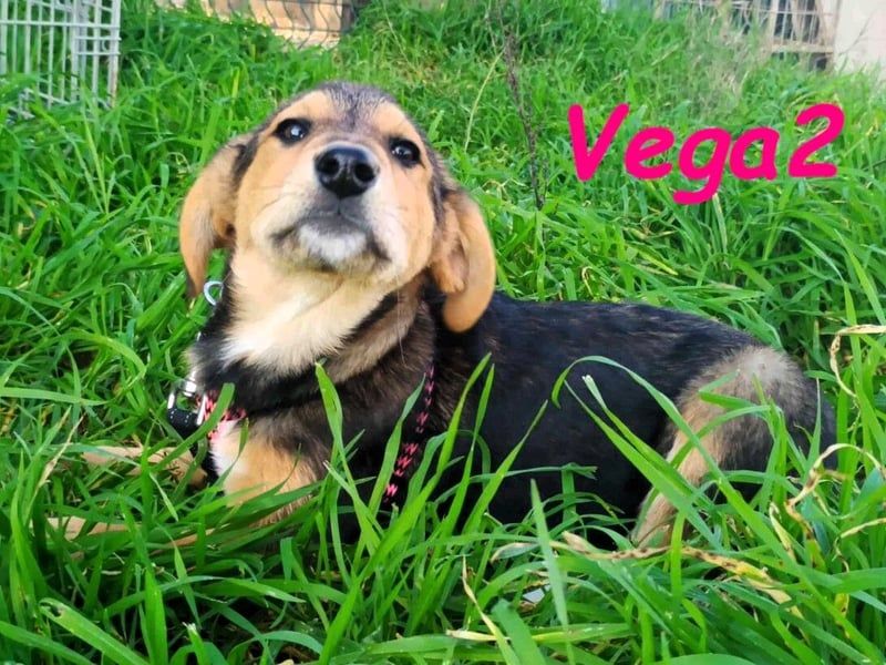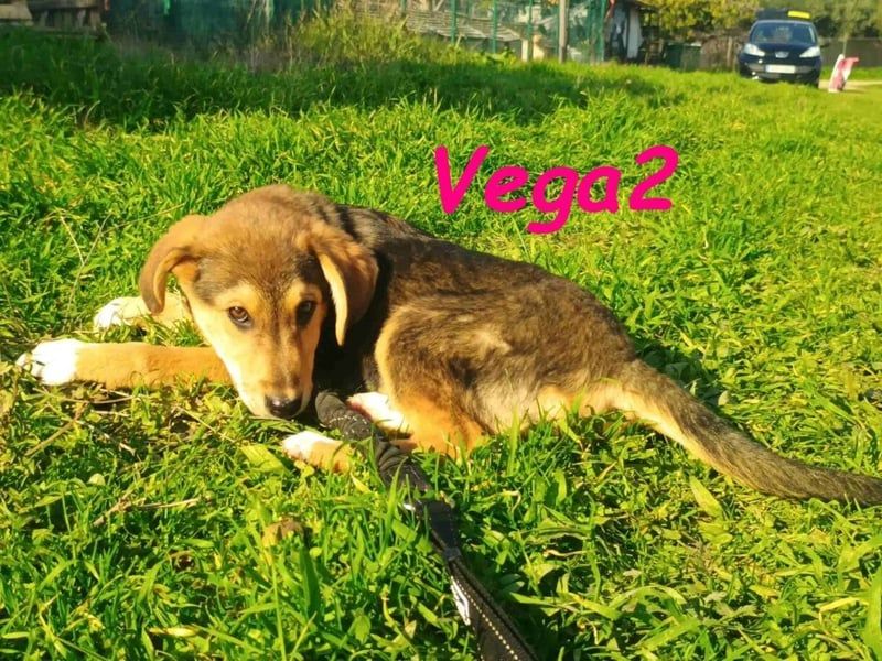 Vega2 ist eines ihrer Babys. Sie ist etwas schüchtern, aber wenn man ruhig mit ihr spricht und ihr Zeit gibt, fasst sie schnell Vertrauen. Sie ist jetzt ein fröhlicher, anhänglicher und lieber Welpe, der gerne mit den anderen Welpen im Tierheim spielt und herumtollt. Sie ist bereit, ihre Familie fürs Leben zu finden und die Wärme und Liebe eines Zuhauses zu genießen.
