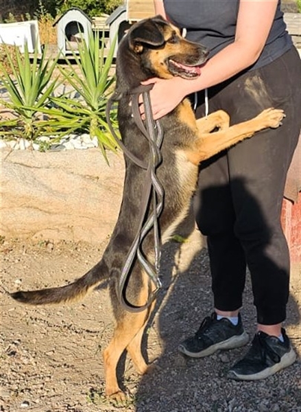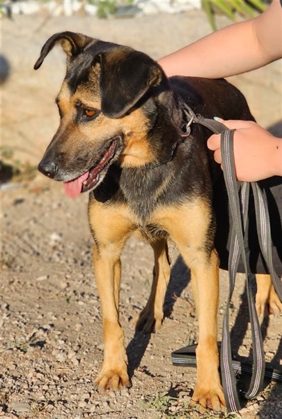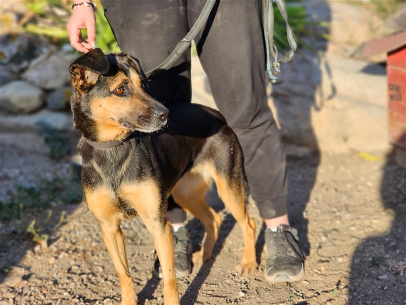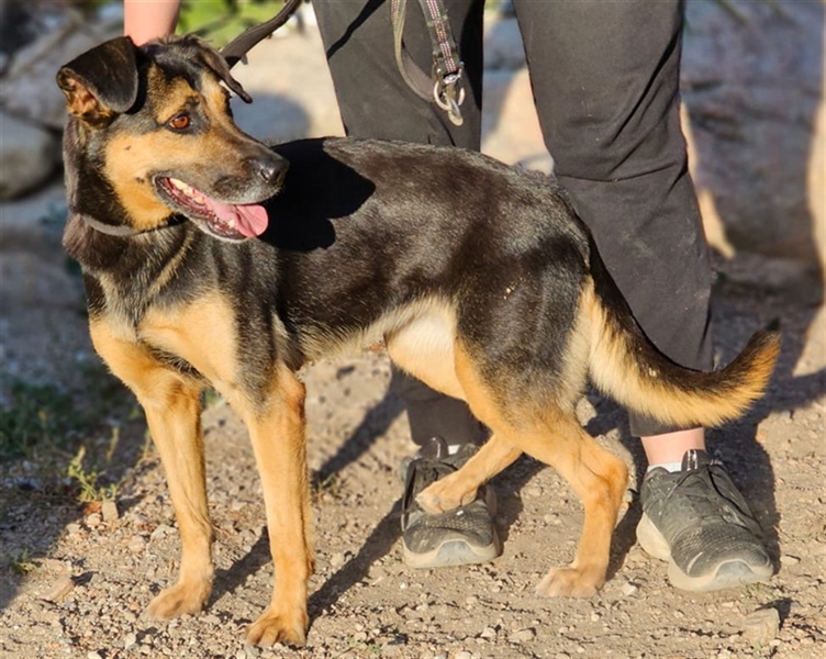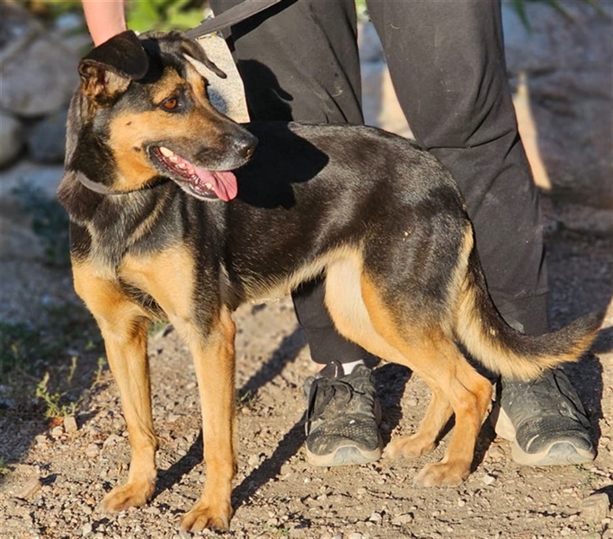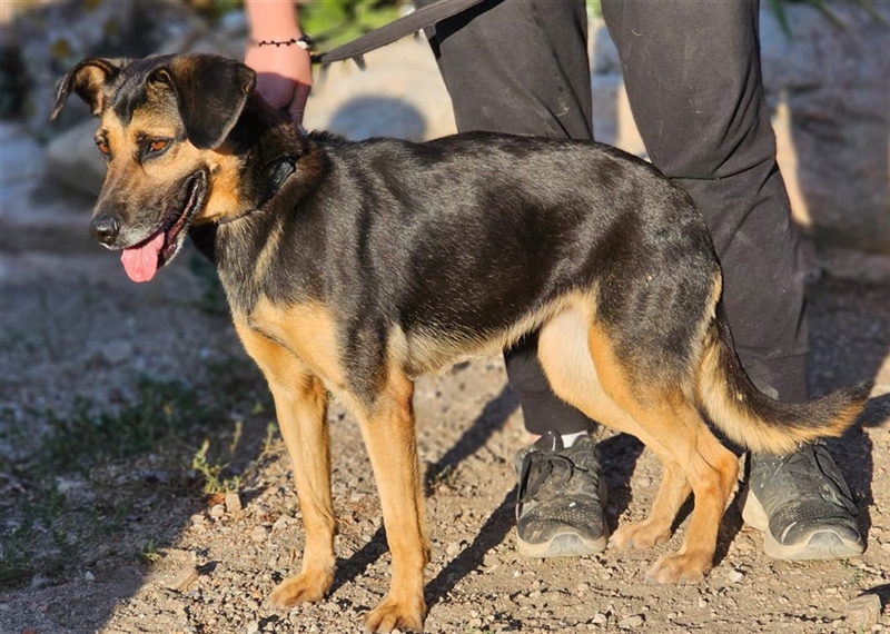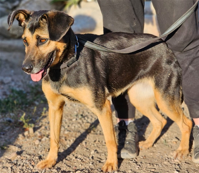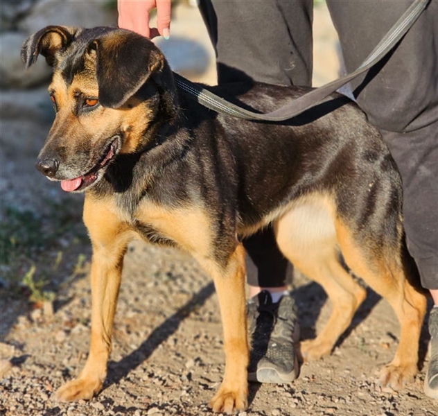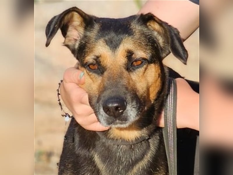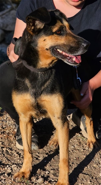 Ihr Äußeres erinnert ein wenig an einen Schäferhund. Und genau diese Power hat sie auch. Lila ist aktiv, stürmisch, hat einen klugen Kopf und sucht Menschen, die sie auslasten. In unserem Tierheim geht sie völlig unter, und als Marco, unser Kollege vor Ort, sie aus dem Gehege holte, war sie völlig außer sich vor Freude und Energie, die sich eben mal entladen musste.