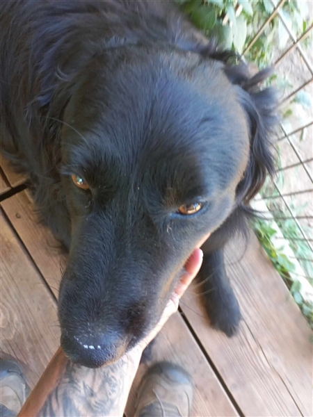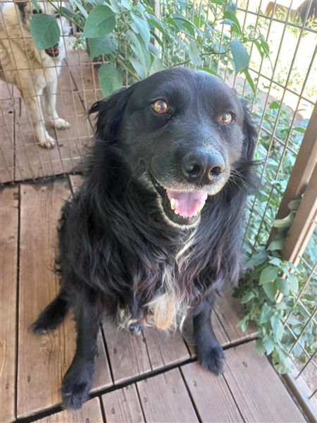 Ich bin der Rontu ... ein bildhübscher Mischlingsrüde im jungen Erwachsenenalter. Auch wenn ich kein Riese bin, bringe ich doch schon eine Körperstatur mit, die man als kräftig bezeichnen könnte. Ich habe wunderhübsches lackschwarzes Fell mit einem weißen Fleck auf der Brust, auf meinem Kinn und sogar eine Zehenspitze von mir leuchtet weiß. Mein Haar ist halblang, fällt in in leichten Wellen ... schon eine hübsche und ansehnliche Frisur die mir die Natur da in die Wiege gelegt hat. Meine Lauscher sind vom Typ Schlappohr und ich habe besonders schöne treue braune Augen.