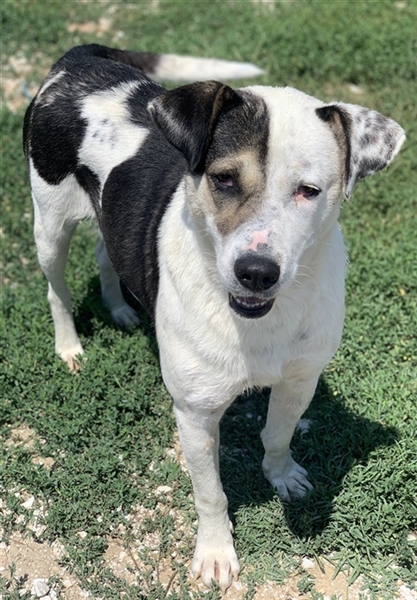 Marisa hat eine außergewöhnliche Fellzeichnung. Besonders süß sind die Ohren, denn eines ist schwarz, das andere gefleckt. Doch neben ihrem schönen Erscheinungsbild beweist uns Marisa auch jeden Tag, wie schön ihr Inneres ist. Sie zeigt sich als freundliche und sehr menschenbezogene Hündin. Sie kommt mit anderen Hunden gut zurecht und kann auch schon an der Leine laufen. Wenn Sie diese liebe Hündin wieder zum Strahlen bringen möchten, dann warten Sie nicht lange und melden Sie sich schnell bei uns. Wir freuen uns auf Ihre Anfrage!