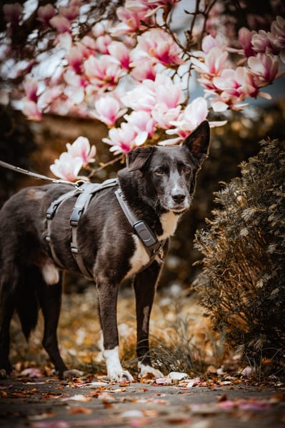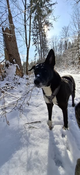 Draußen laufe ich voll lieb an der Leine und ziehe hier niemanden durch die Gegend. Ich pöbel auch keine anderen Hunde an. Gern gehe ich spazieren wo man einfach mal alles um sich herum in der Natur und in Ruhe betrachten und beschnuppern kann. Ich weiß jetzt auch, dass Spaziergänger, Fahrradfahrer oder Pferde die mir unterwegs begegnen kein Problem sind und sehe das daher entspannt. Sehr gern erkunde ich auch Bäche und genieße das Wasser an meinen Füßen.