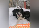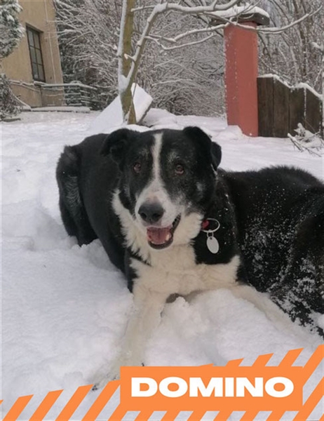 Dort genießt er seine "alten" Tage, indem er täglich seinen großen Hof kontrolliert, ab und an mit seinen jüngeren Rudelkumpels spielt oder gar mit seiner Präsenz für Ruhe und "gutes Benehmen" bei den Jungspunden sorgt. Er mag es nach wie vor bei Gassirunden den nahe liegenden Wald zu erkunden. Den Großteil des Tages verbringt Domino gerne auf einem seiner gemütlichen Beobachtungsposten auf dem Hof oder seelenruhig schlummernd im Haus.