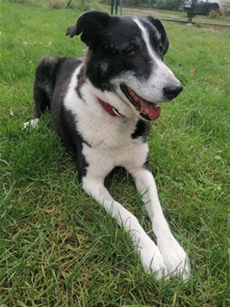 Domino hat den Großteil seines Lebens in einem Einzelzwinger von 4qm im Tierheim verbracht. kennt dadurch die Hundeetikette und das Vertrauen in den Menschen nicht.
