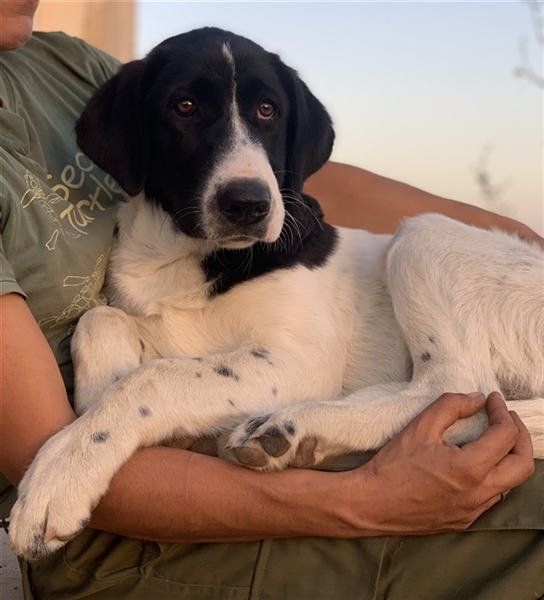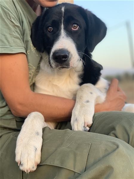 Zelina ist eine junge Hundedame und trägt eine schmale weiße Blässe zwischen ihren Augen in ihrem hübschen schwarzen Gesicht. Die Musterung ihres Fells am Körper fällt unterschiedlich in den Farben Schwarz und Weiß aus, so trägt sie zudem schwarze Punkte an ihren Pfötchen. Auf der Pflegestelle zeigt sie ein liebes, aufgewecktes und verschmustes Wesen. So kommt sie bei der Ankunft der Pfleger sofort zum Zaun gelaufen und erwartet diese sehnsüchtig. Zudem zeigt sie sich vor Ort gegenüber anderen Artgenossen verträglich.