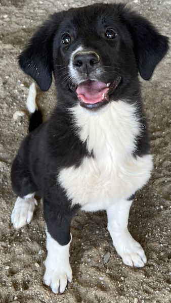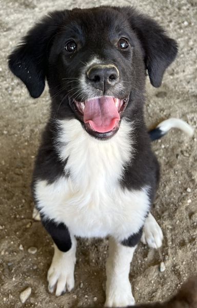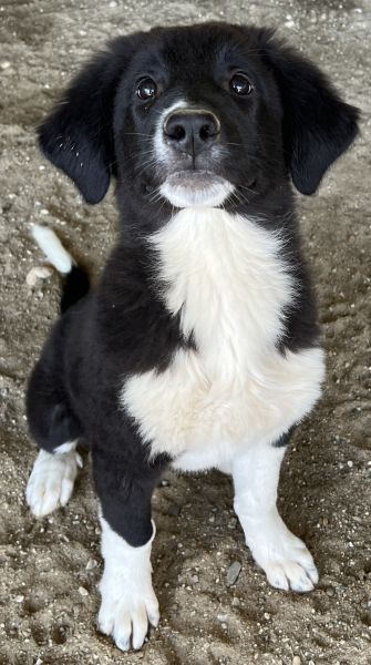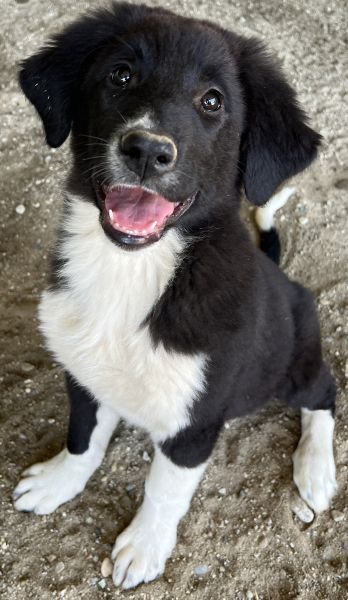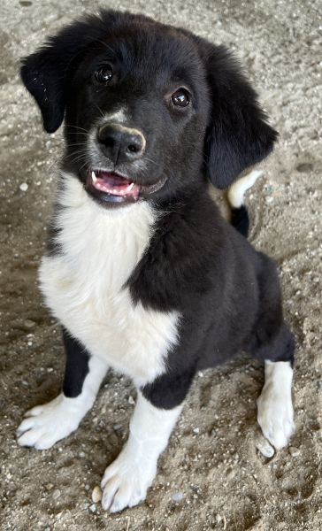 Lotti ist ein wunderschönes, junges Hundemädchen mit schwarzem Fell und einigen weißen Akzenten, beispielsweise an der Schwanzspitze. Voraussichtlich wird sie einmal zu einer großen Hündin heranwachsen. Charakterlich ist Lotti aktuell welpentypisch freundlich, verspielt und sehr menschenbezogen. Sie sucht gerne die Nähe zu ihren Bezugspersonen, liebt es zu spielen und zeigt sich verträglich mit anderen Hunden.