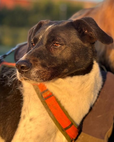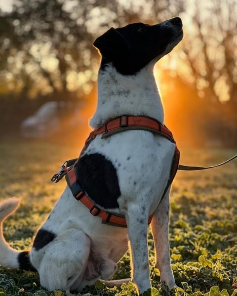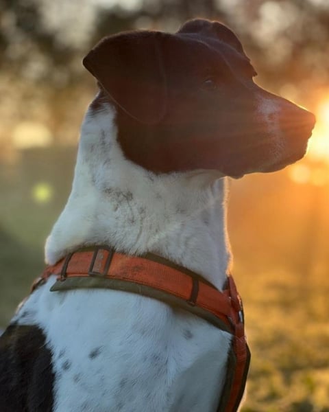 Doch Phönix’ Lebensrealität sieht leider anders aus. Er ist einer der Hunde, die alleine in einer Box leben und täglich für 1h in einen Auslauf gebracht werden. Dort schnüffelt Phönix dann 5 Minuten, erledigt sein Geschäft und stellt sich dann zur Türe des Auslaufs, wo er die vorbeigehenden Menschen beobachten kann. Nach einer Stunde wird er wieder in seine Box gebracht, wo er dann bis zum nächsten Tag wieder bleibt. Phönix steht oft an der Boxtür und beobachtet die vorbeigehenden Schatten. Bleibt man stehen und schaut durch den Spalt hinein, schwänzelt er freudig. Im regulären Tierheimalltag bleibt keine Zeit für Kuscheln oder Spaziergänge. So kommt es, dass Phönix an den meisten Tagen des Jahres nur beim Hinaus- und Hineinbringen kurz Kontakt zu einem Menschen hat und praktisch 24 Stunden alleine ist. Schon vor einem Jahr hat mich Phönix’ ruhige und gleichzeitig freudige Art sehr berührt und so habe ich begonnen, mich bei meinen Aufenthalten im Sicheren Hafen (wenn die Zeit es zuließ) zu ihm in den Auslauf zu setzen. Ist ein Mensch bei ihm, rennt er vor Freude durch den gesamten Auslauf, kommt immer mal wieder Streicheleinheiten abholen und ist überglücklich. Auch Spaziergänge liebt Phönix über alles. Er ist ein unfassbar toller Spazier-Partner. Das Geschirr kann man ihm sehr einfach anziehen, er läuft unkompliziert an der Leine und nimmt seine Umwelt interessiert wahr - und bei all dem strahlt Phönix eine unglaubliche Ruhe aus.