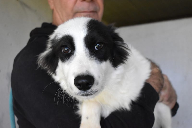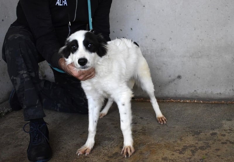 Noch wirkt Jovian kerngesund. Er ist ein neugieriges Hundekind und als die Tierschützer ihn zum ersten Mal besuchen kommen, ist er natürlich erst einmal vorsichtig. Dann aber taut er schnell auf und verteilt eifrig schmatzende Hundeküsschen.
