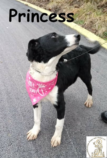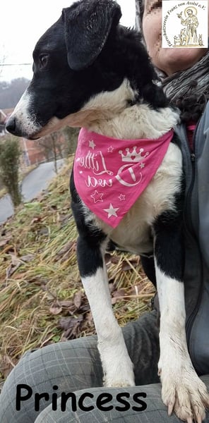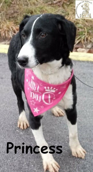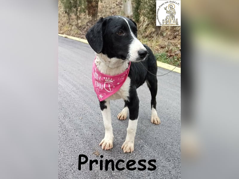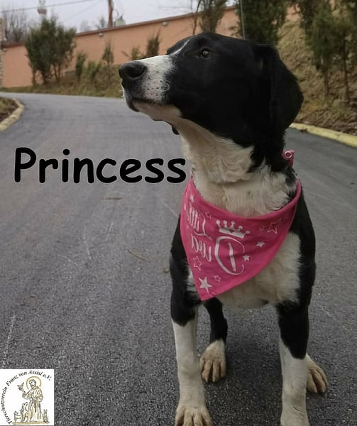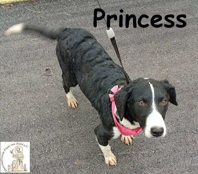 Princess ist ein junges Hundemädchen mit schwarz-weißem Traumfell und einem wachen, neugierigen Blick, der sofort ins Herz trifft. Zusammen mit ihrem Rudel wurde sie aus dem Stadtleben in Sicherheit gebracht und lebt nun in einer Pension – bereit, endlich ihr eigenes Märchen zu beginnen.