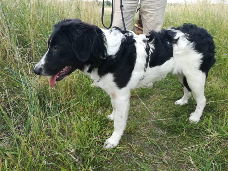 Draußen ist noch manches ungewohnt für sie. Fremde Menschen und Autos bereiten ihr noch Angst. Sie braucht dann etwas Abstand von diesen, ohne jedoch jemals aggressiv oder laut zu werden. In ruhigen Umfeld (Feld) geht sie gerne spazieren und läuft gut an der Leine mit,erkundet dabei ihre Umgebung.