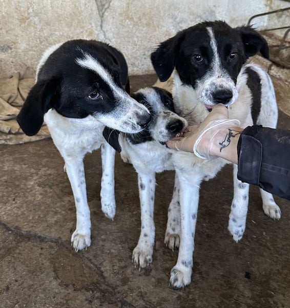 Die Geschichte von Alva und ihren drei Welpen ist sehr traurig und beginnt in einem Dorf in der Nähe von Serres in Griechenland. Alva lebte auf einem Friedhof und wurde dann von einem Mann bei sich aufgenommen. Dort bekam sie dann ihre drei Welpen. Er kümmerte sich aber nicht richtig um die Hunde. Eine aufmerksame Nachbarin informierte uns und unsere Helfer und Helferinnen konnten die Hunde retten. Sie waren alle sehr dünn und stark unterernährt. Trotz dieser traurigen Umstände haben sie alle nicht das Vertrauen in uns Menschen verloren und zeigen sich sehr freundlich und lieb. Daher wünschen wir jedem einzelnen Familienmitglied, dass sie alle schnell ein schönes Zuhause finden, in dem sie geliebt und umsorgt werden, so wie sie es verdient haben.