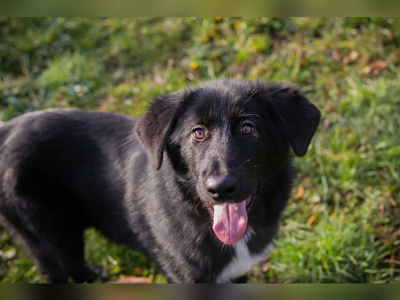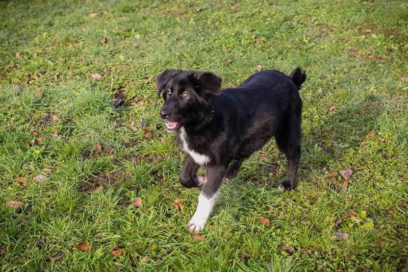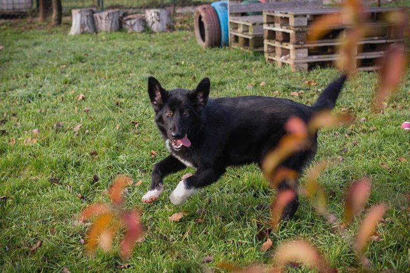 Mit ihren tollen weißen Pfötchen ist Senta aktiv und verspielt unterwegs. Sie sucht auch die Nähe zum Menschen (Januar 2026)