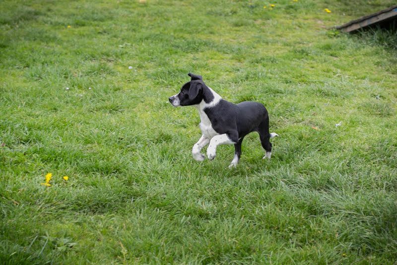 Quirlig und aktiv unterwegs. Hubsi ist eben noch ein richtiger Welpe (April 2026)