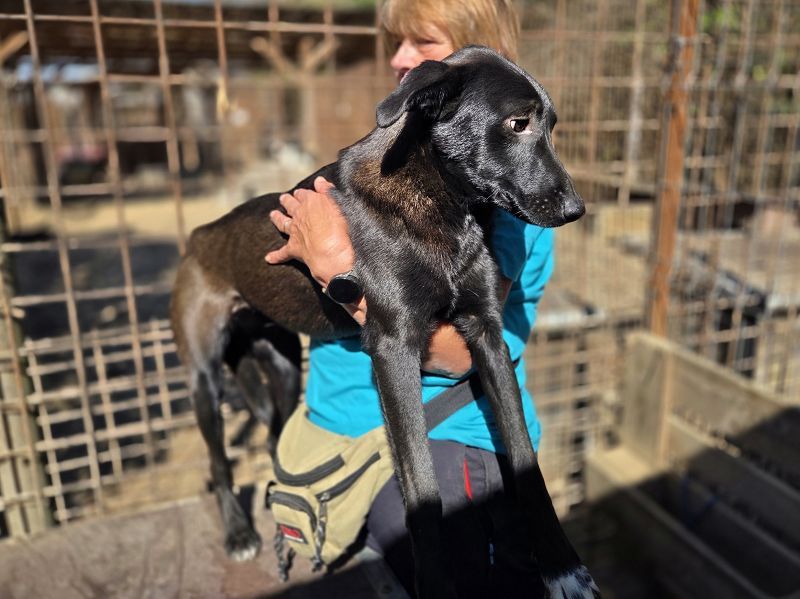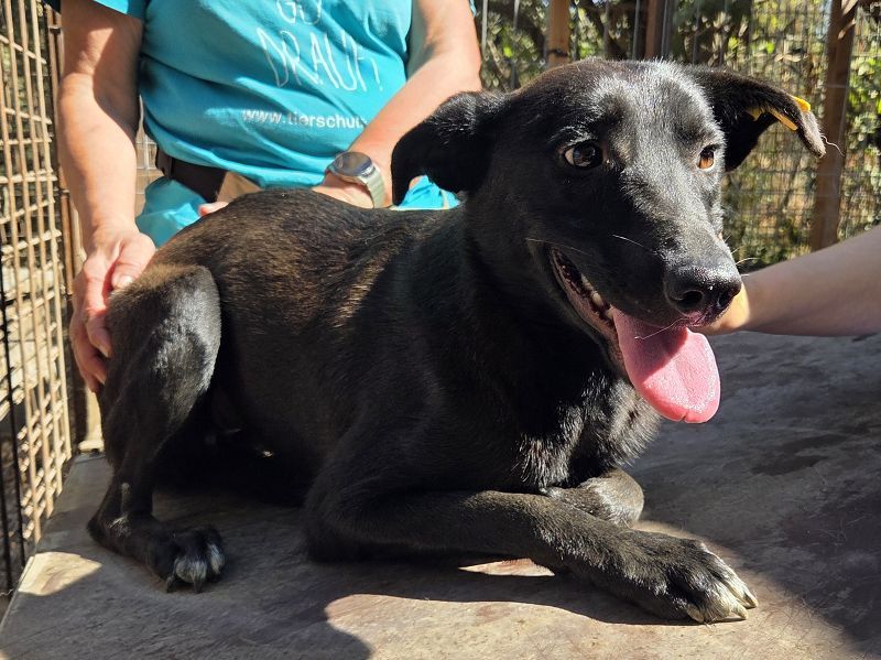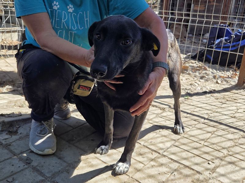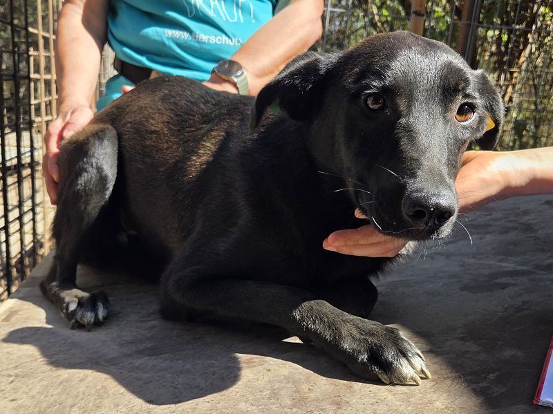 Lana ist eine von denen, die man leicht übersieht. Ganz schwarz, mit zarten weißen Pfoten, schmalem Körperbau und viel zu dünn – so stand sie da, als wir sie im Tierheim entdeckten. Kein lautes Bellen, kein Drängen nach vorn. Sie wollte einfach nur nicht stören. Dabei hätte sie es so sehr verdient, endlich gesehen zu werden. Wie so viele schwarze Hunde hat auch Lana es besonders schwer, ein Zuhause zu finden. Und doch ist gerade sie eine von denen, die sich leise in dein Herz schleichen – mit ihrem sanften Wesen, ihrer stillen Art und diesen großen, vorsichtigen Augen, die so viel erzählen. Vermutlich wird sie von den anderen Hunden nicht ans Futter gelassen, denn sie ist viel zu dünn für ihre Größe. Doch statt sich zu behaupten, zieht sie sich lieber zurück. Vielleicht hat sie sich mit dem Hintergrund abgefunden, den ihr niemand zugewiesen hat – aber sie hätte so viel mehr verdient. Als wir Lana streichelten und vorsichtig berührten, ließ sie alles zu. Ganz geheuer war es ihr noch nicht, man spürte, dass menschliche Nähe für sie etwas Neues ist. Aber gleichzeitig auch, dass in ihr etwas aufblühen will – dass da eine zarte Seele steckt, die einfach nur ein bisschen Zeit, Sicherheit und Liebe braucht, um Vertrauen zu fassen. Lana ist mit geschätzten 1,5 Jahren noch so jung. In ihr steckt Potenzial, Sanftmut, Neugier und vor allem ein Herz, das sich danach sehnt, anzukommen. Sie muss nicht laut sein, um besonders zu sein – sie ist es einfach durch ihre stille, liebevolle Art.