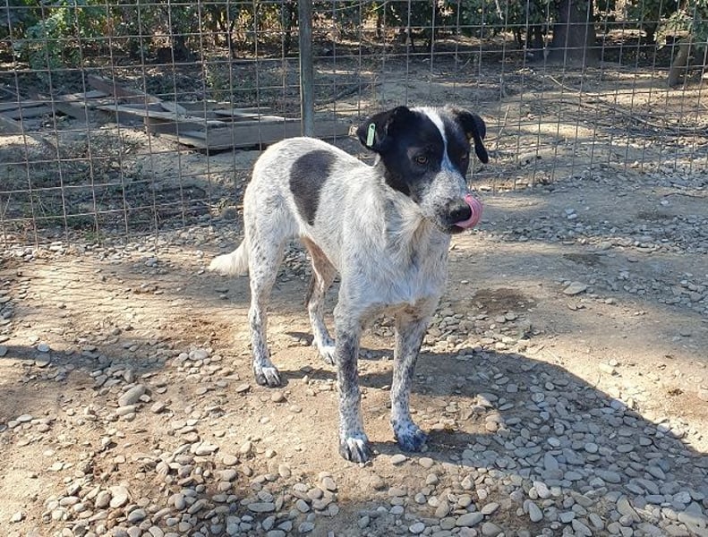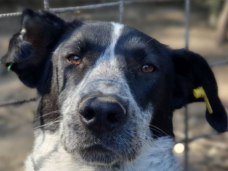 Diese hübsche, weiß gepunktete Hündin mit ihren schwarzen Abzeichen ist ein sensibles, zurückhaltendes Wesen, das jedoch deutliches Interesse an Menschen zeigt. Anfangs hielt sich Nelia in ihrem Zwinger lieber auf Abstand, beobachtete alles genau und suchte sich eine sichere Ecke. Als wir ruhig bei ihr blieben, wagte sie sich langsam näher und nahm auch unsere Leckerchen direkt aus der Hand – vorsichtig, aber ohne Angst. Als wir sie schließlich sanft berührten, blieb sie still, auch wenn man merkte, dass sie uns noch nicht ganz vertraute. Umso schöner war es zu sehen, dass Nelia mit der Zeit etwas zutraulicher wurde und sich mehr öffnete. Im Umgang mit anderen Hunden zeigt sie sich gut verträglich und sozial. Für diese feine Hündin wünschen wir uns ein ruhiges Zuhause mit Menschen, die ihr Zeit geben, sich in ihrem Tempo zu entwickeln. Sie hat das Herz am richtigen Fleck – sie braucht nur jemanden, der es ihr zeigt.