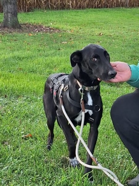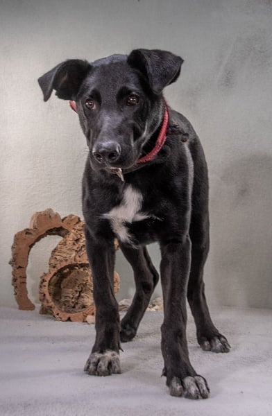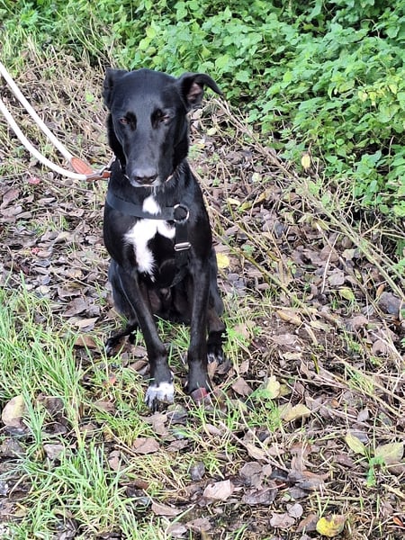 Pino ist ein Mischlingsrüde, geboren im Februar 2024, mit einer Schulterhöhe von etwa 53 cm. Er stammt aus Portugal, wo er als Welpe angebunden im Wald gefunden wurde – ohne Futter, ohne Wasser und in einem stark geschwächten Zustand. Der Strick um seinen Hals hatte sich bereits tief eingeschnitten, doch Pino hatte das Glück, rechtzeitig gerettet zu werden.