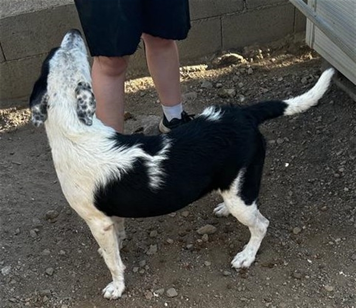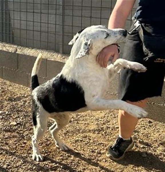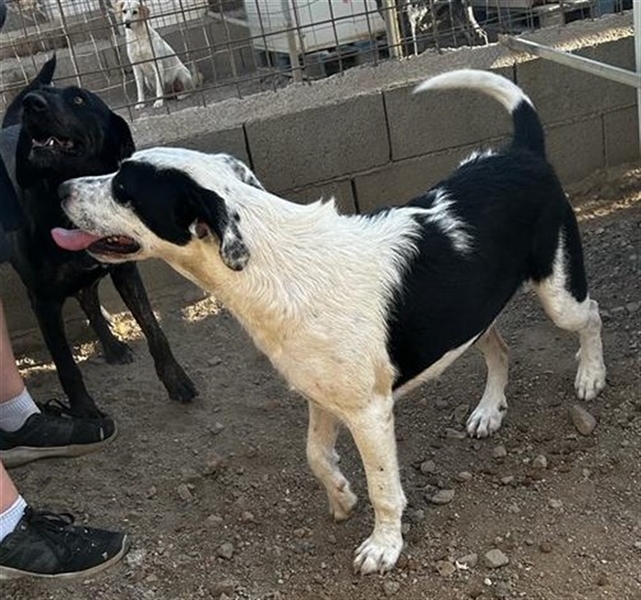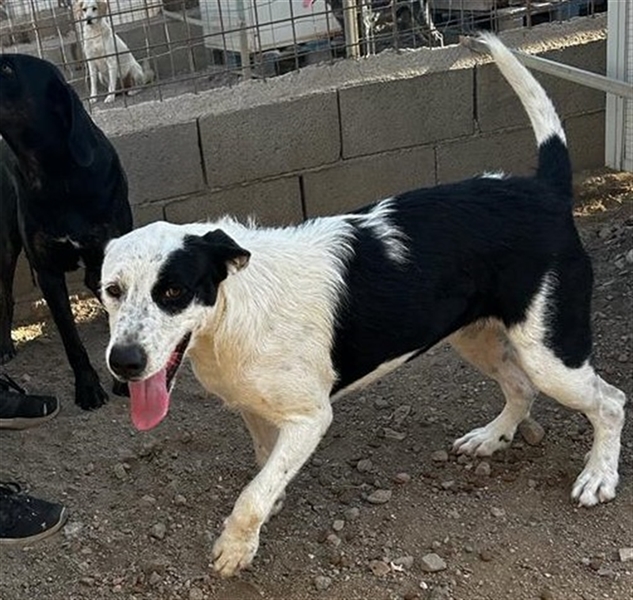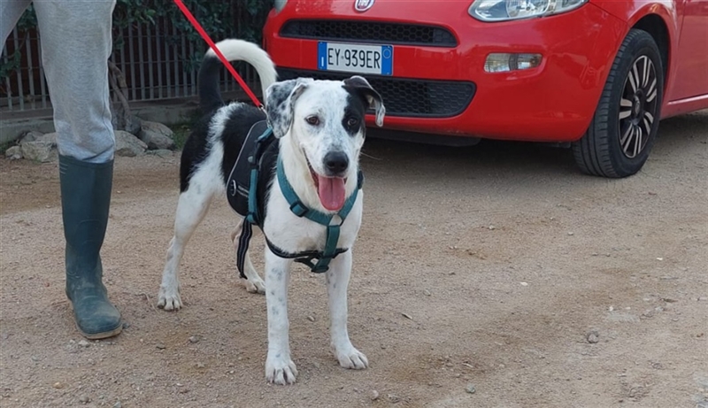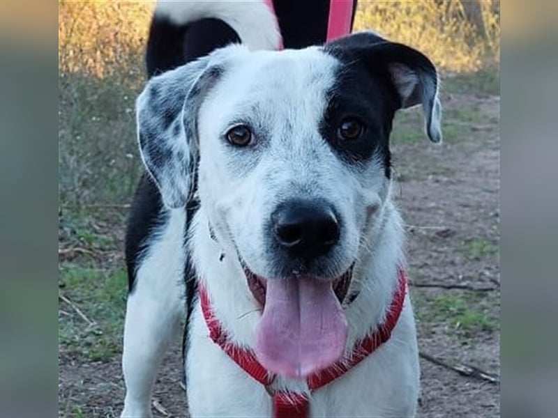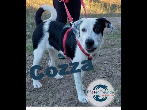 Cozza ist eine sehr aufgeweckte Hündin, die Menschen über alles liebt und nach Aufmerksamkeit bettelt.