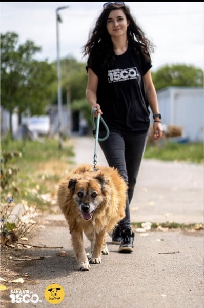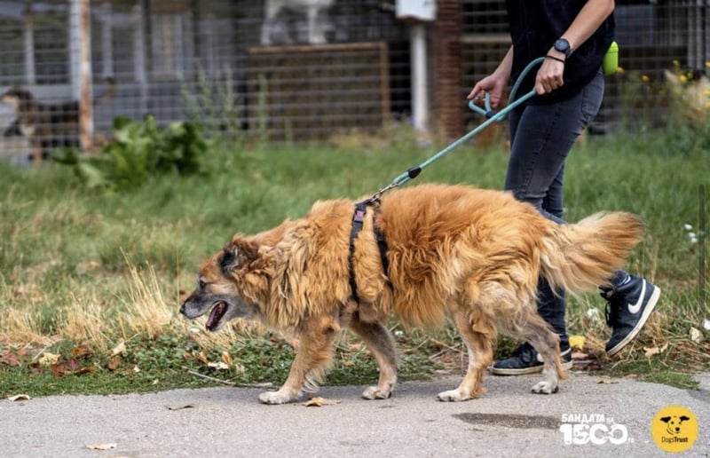 An der Leine läuft er langsam, mit gleichmäßigem, aber schwerem Schritt. Richtungswechsel fallen ihm schwer, doch sobald er sich neu orientiert hat, geht er wieder ruhig weiter. Anderen Hunden gegenüber ist er gleichgültig – er ignoriert sie einfach und sucht keinen Kontakt. Wahrscheinlich spürt er seine körperliche Schwäche und vermeidet instinktiv jede Interaktion mit ihnen.