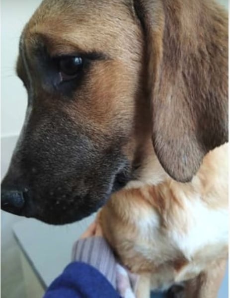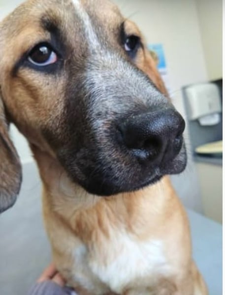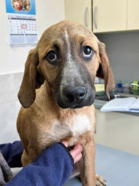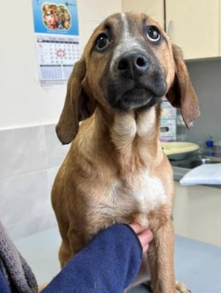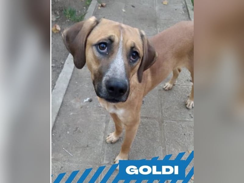 Goldi wurde als Welpe zusammen mit ihren Geschwistern in einem leerstehenden Haus entdeckt. Die komplette Welpengang kam auf eine Pflegestelle.