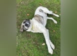 Pugsley ist ein großer, sanfter Kerl mit hellem Fellkleid und einigen dunkleren Akzenten im Gesicht. Er wird uns als freundlicher und lieber Rüde beschrieben. Auch mit den anderen Hunden im Tierheim zeigt er sich aktuell verträglich. Zudem durfte er bereits Katzen kennenlernen.